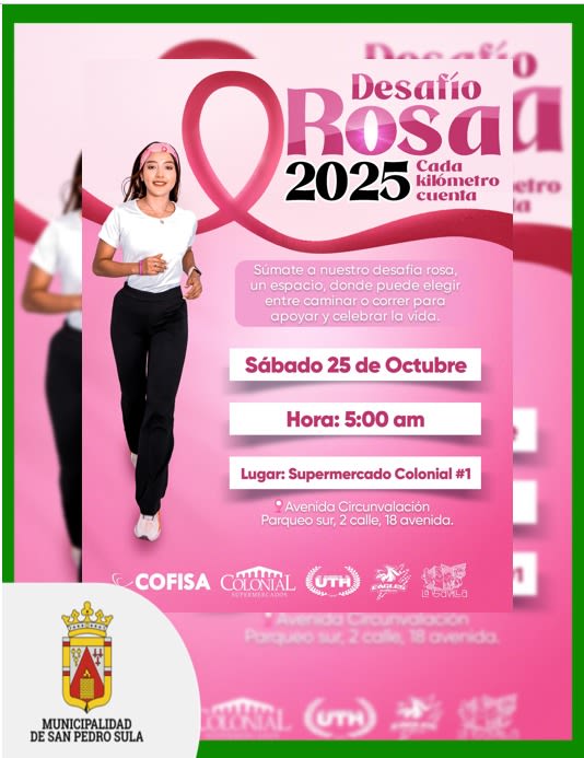 Este 25 de octubre te invitamos a ser parte de nuestra caminata y carrera solidaria en conmemoración del Mes Rosa, dedicada a la prevención del cáncer de mama.