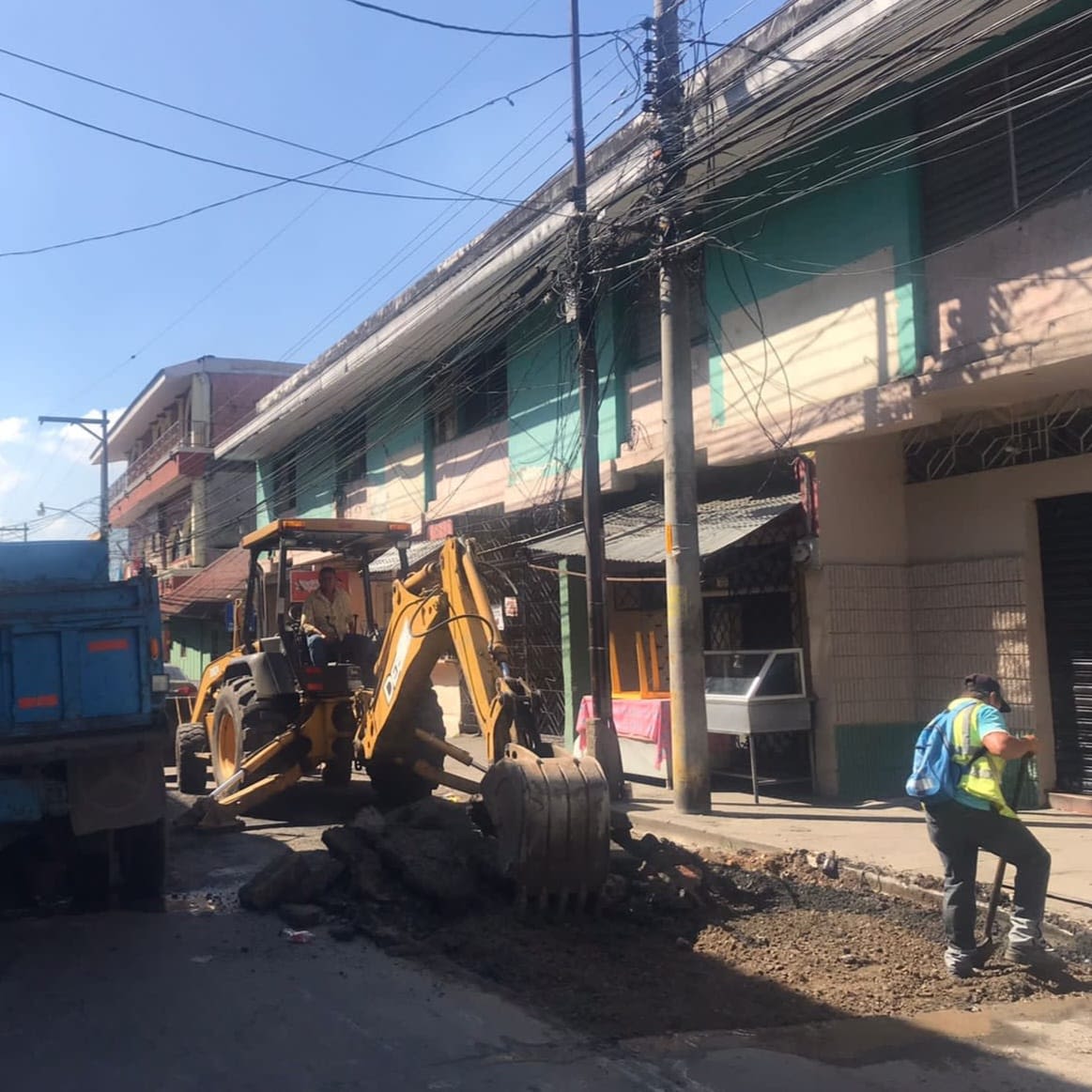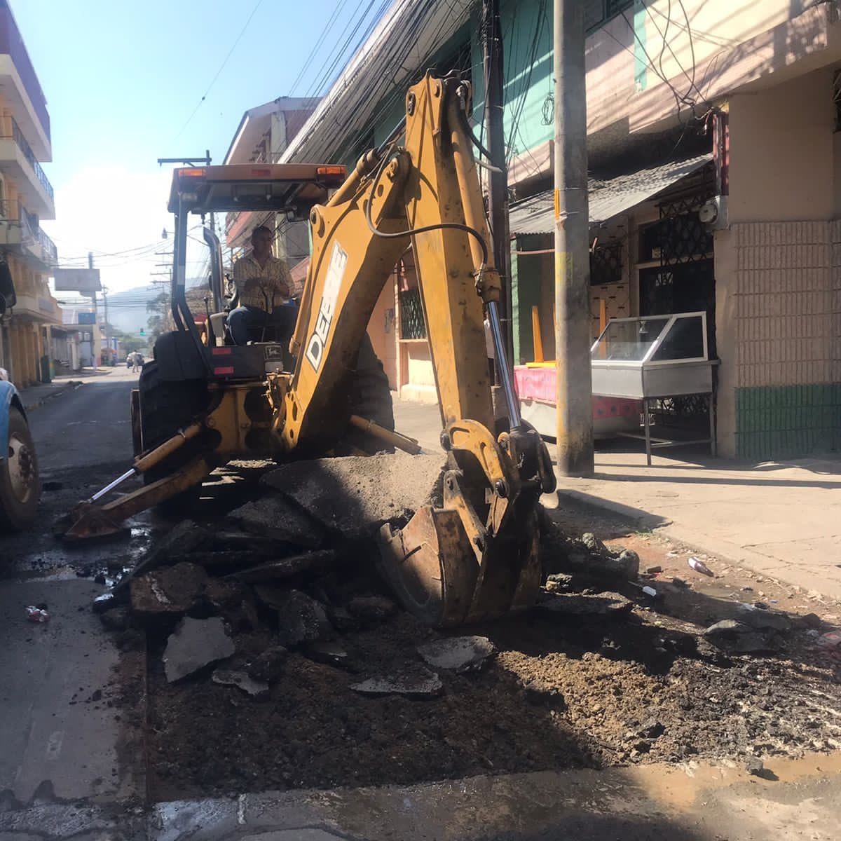 Siguiendo las instrucciones de nuestro alcalde Roberto Contreras, el equipo de la Gerencia de Infraestructura lleva a cabo trabajos de reparación con concreto asfáltico en la red vial pavimentada de barrio El Centro, 6 calle, 3 avenida S. E.
