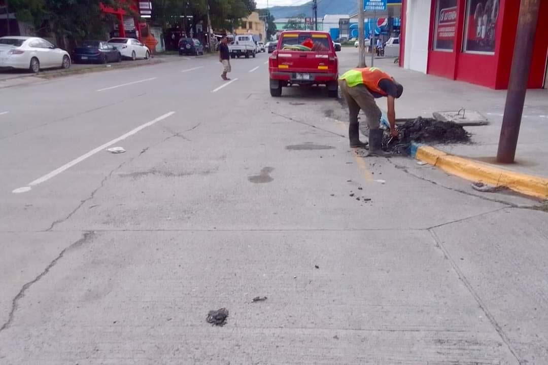 Este día ejecutamos trabajos de mantenimiento en el sistema pluvial de la tercera avenida, bulevar Juan Pablo II y Avenida circunvalación.