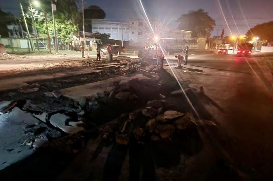 Continuamos con los trabajos nocturnos de bacheo con concreto asfáltico en la avenida Junior.