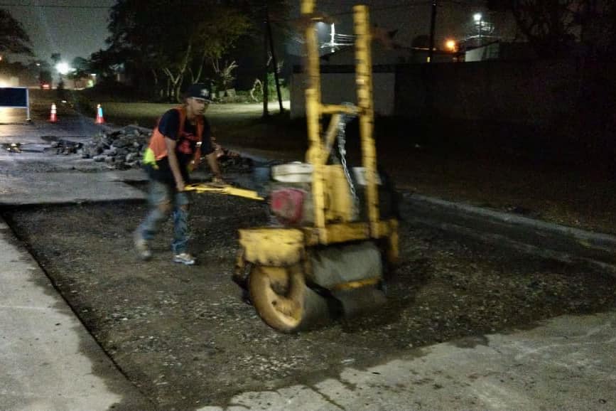 Nuestro equipo continúa con los trabajos nocturnos de bacheo con concreto asfáltico en avenida junior.