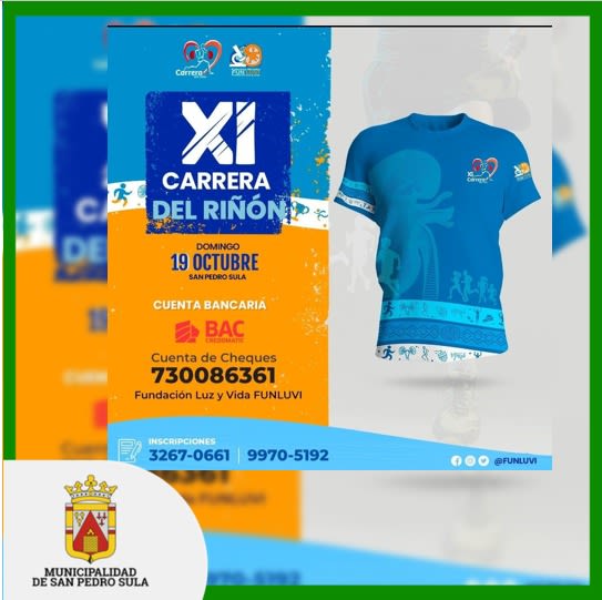 Este domingo 19 de octubre acompáñanos en la 11ª Carrera del Riñón en San Pedro Sula. Súmate a este gran movimiento solidario para apoyar a los pacientes renales de Honduras y crear conciencia sobre la salud de nuestros riñones.