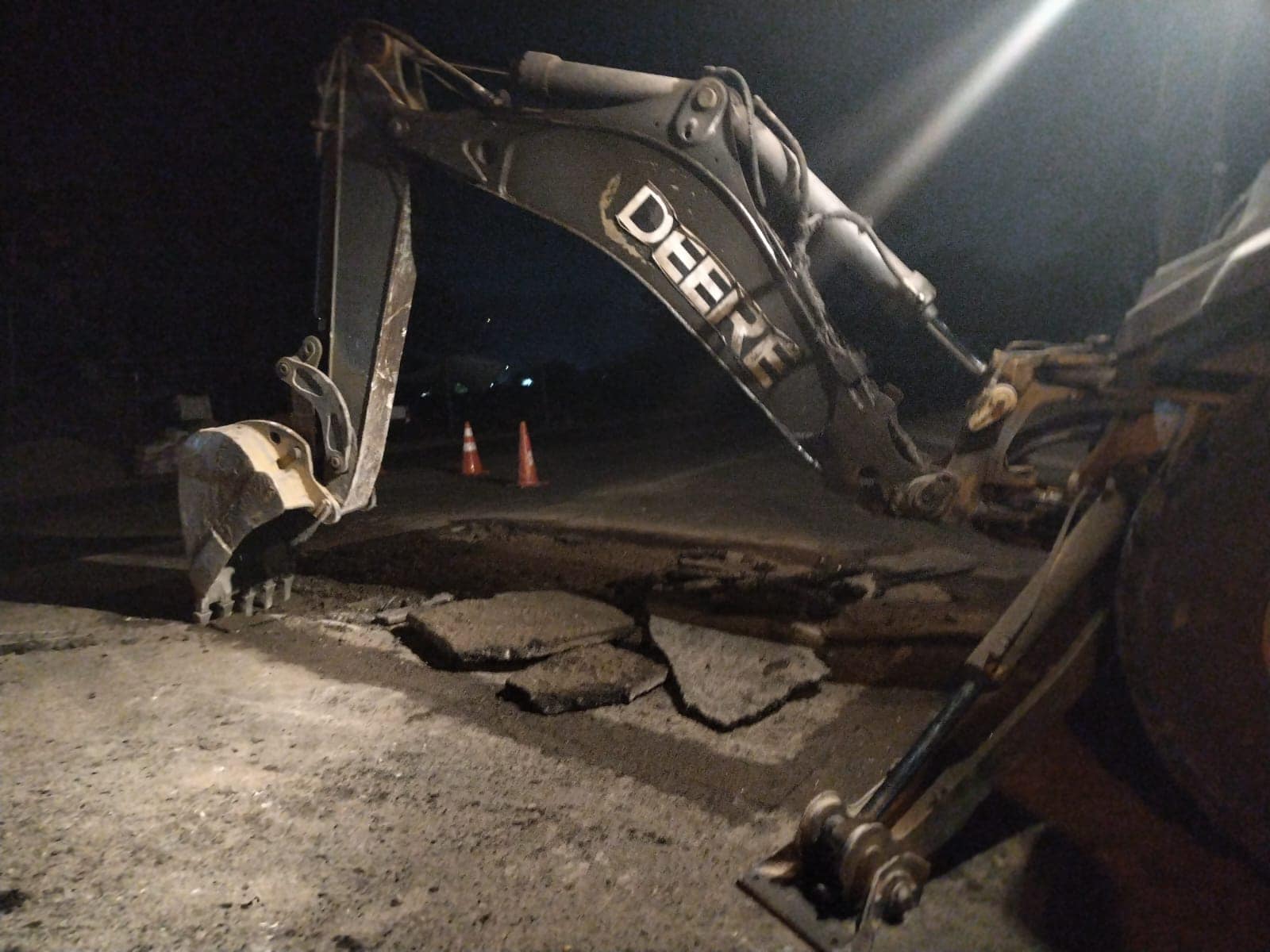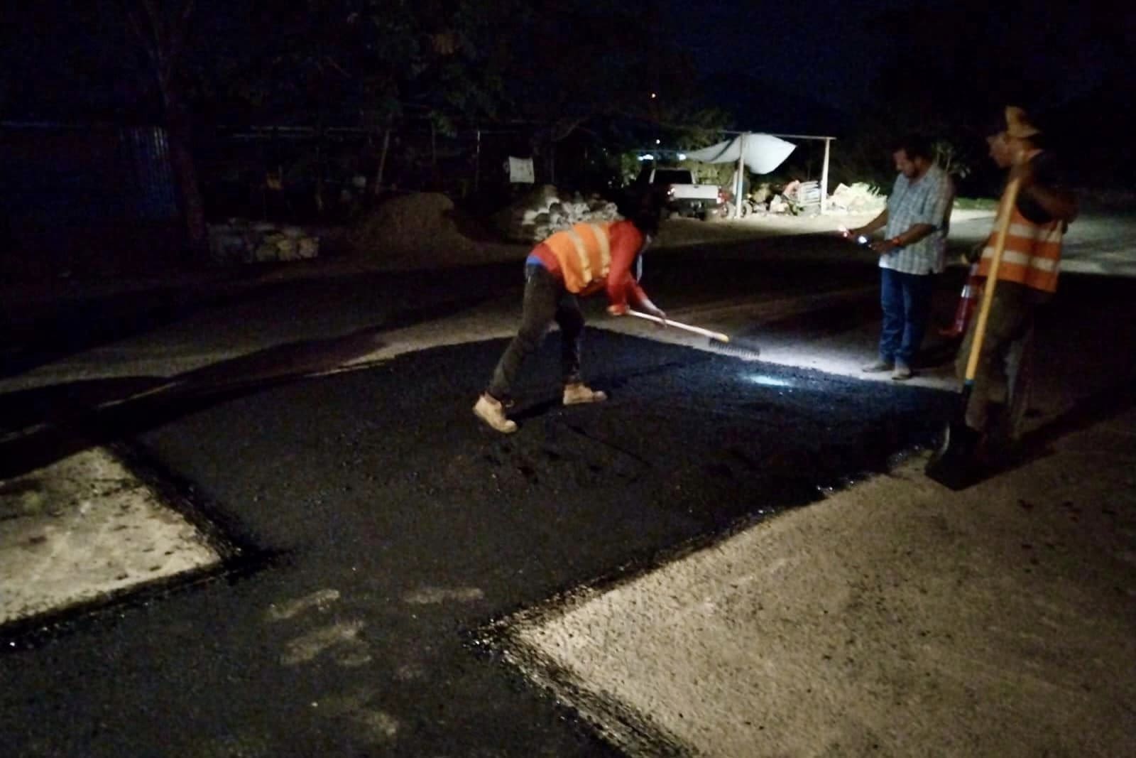 Roberto Contreras, por medio de nuestra gerencia ejecuta trabajos nocturnos de bacheo con concreto asfáltico en la avenida Júnior.