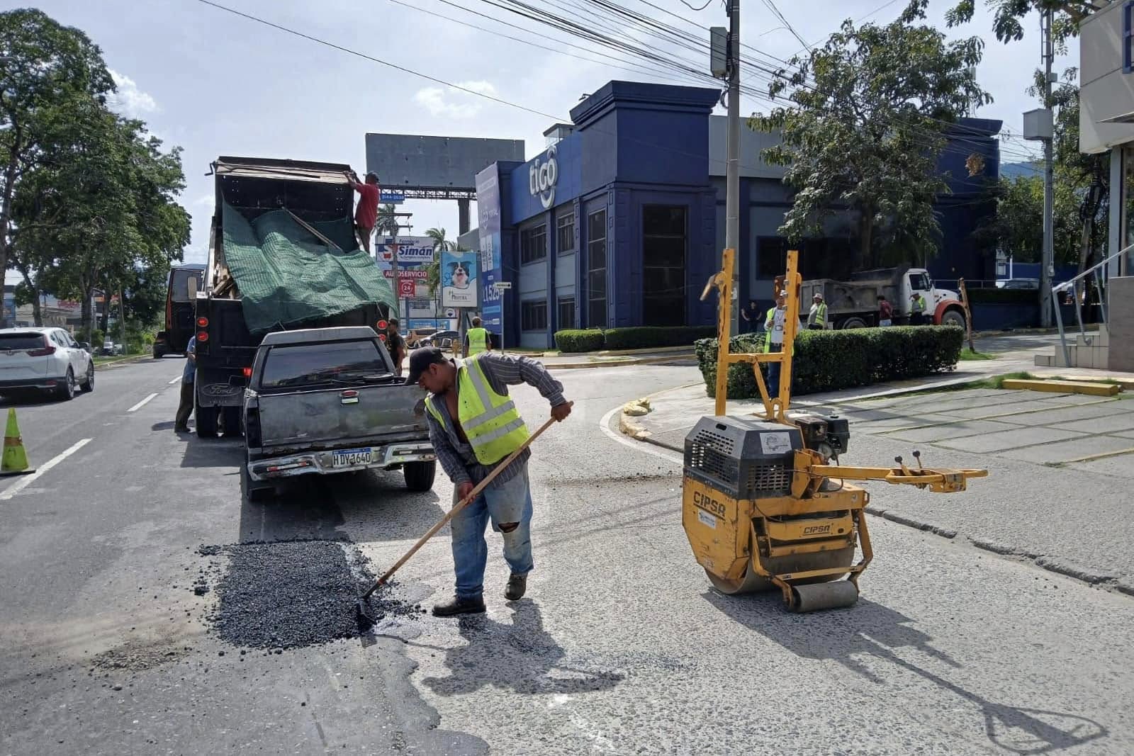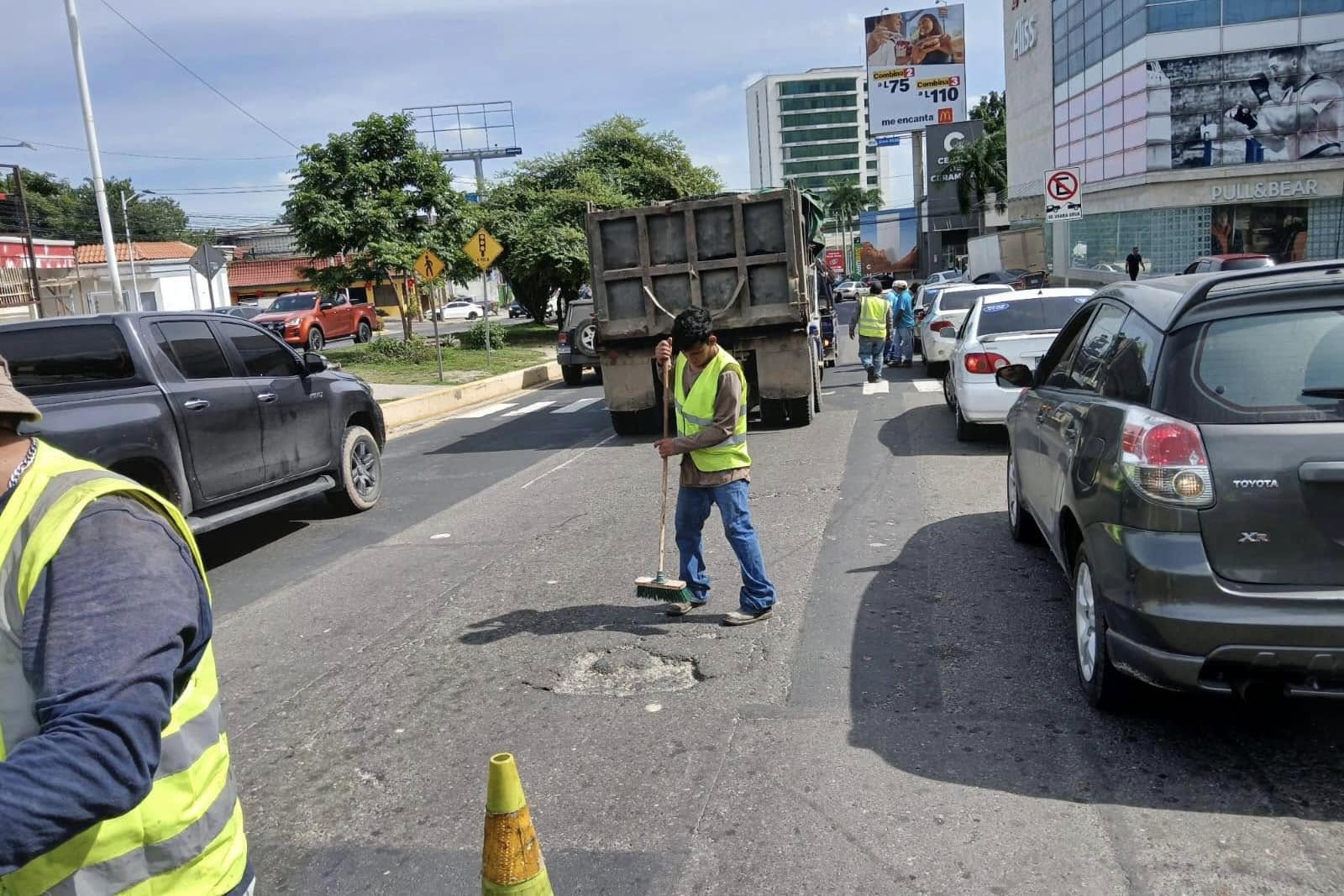 Mantenimiento de vías pavimentadas en San Pedro Sula.