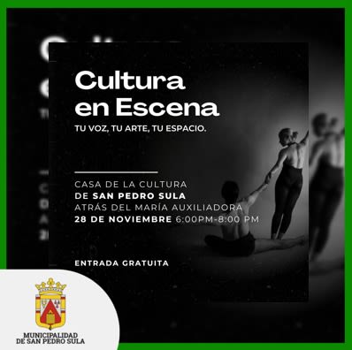 Este 28 de noviembre en la Casa de la Cultura de San Pedro Sula, se realizará Cultura en Escena, un espacio abierto para compartir y disfrutar del talento local en las distintas disciplinas artísticas.