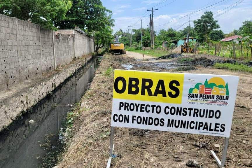 Este día nuestro equipo realiza trabajos de mantenimiento en canal de la colonia San Antonio, sector Chamelecón.