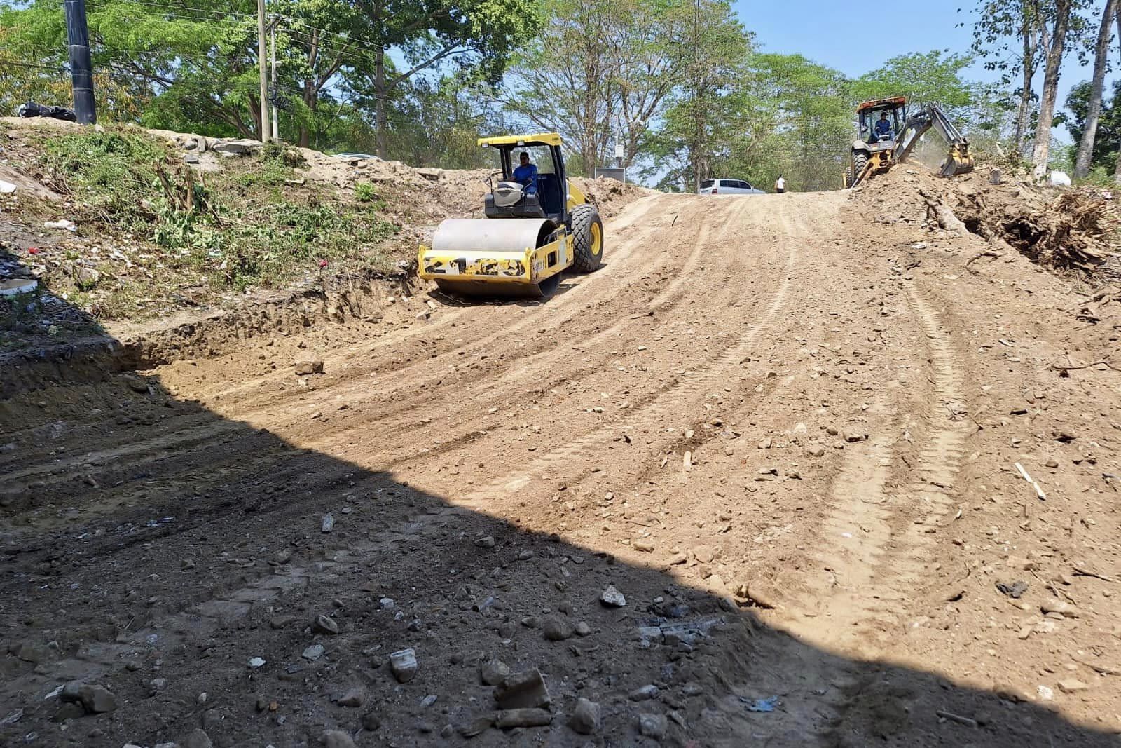 Continuamos con los trabajos de terracería en el proyecto de solución vial en segundo anillo periférico por debajo del puente sobre río El Sauce, a la altura del acceso al sector Los Cármenes.