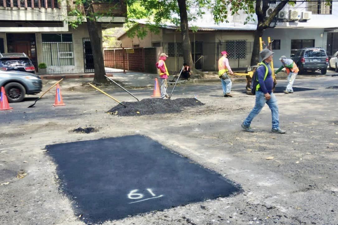 Roberto Contreras, nuestro equipo ejecuta trabajos de bacheo con concreto asfáltico en barrio Los Andes.