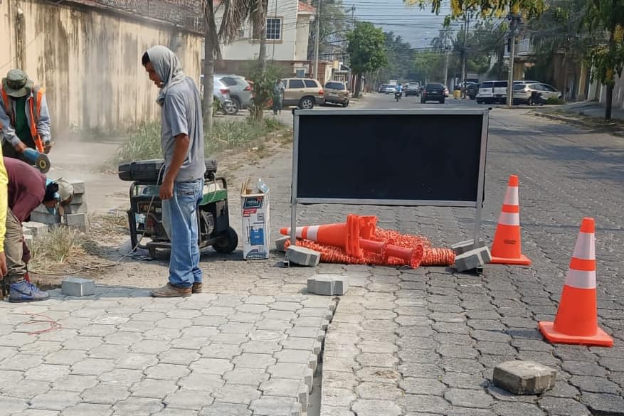 Roberto Contreras, nuestro equipo continúa con los trabajos de bacheo con adoquines en vías internas de las colonias Dubón y Trejo.