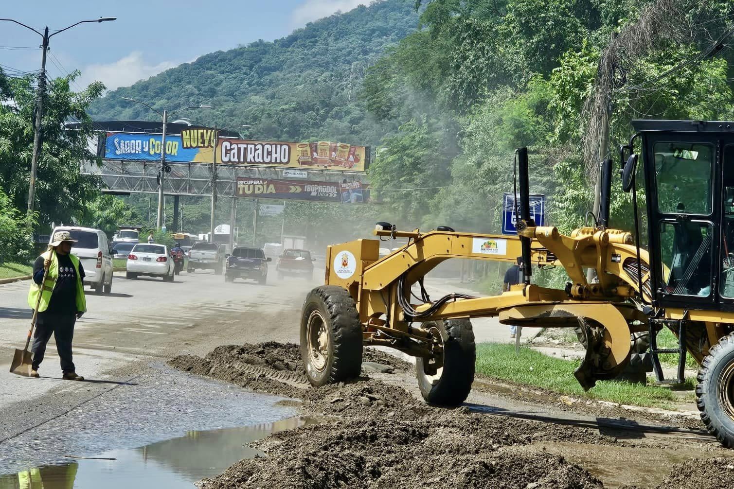 Nuestro equipo de la Gerencia de Infraestructura realiza labores de limpieza en el bulevar del Sur, eliminando todo el sedimento arrastrado por la lluvia.
