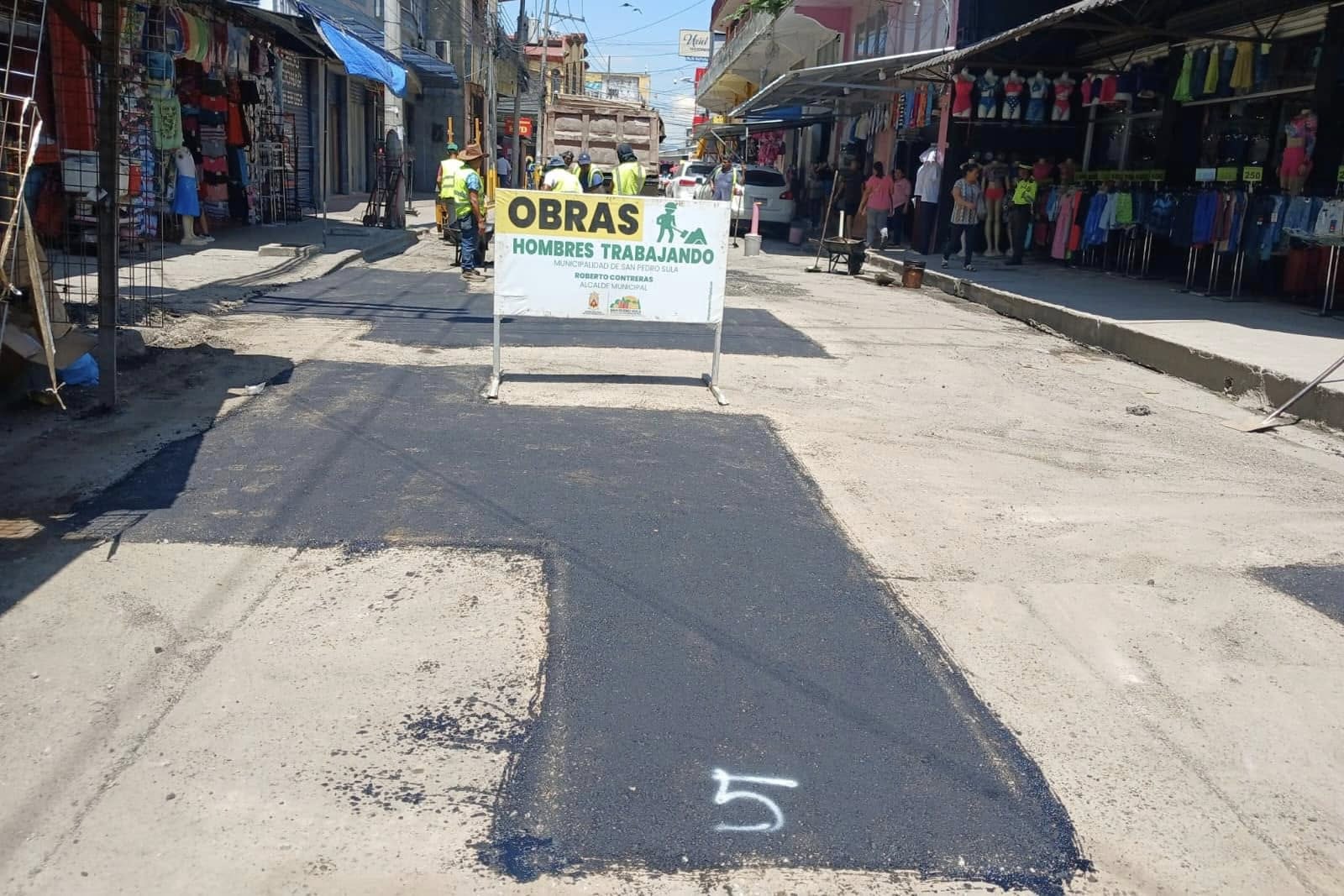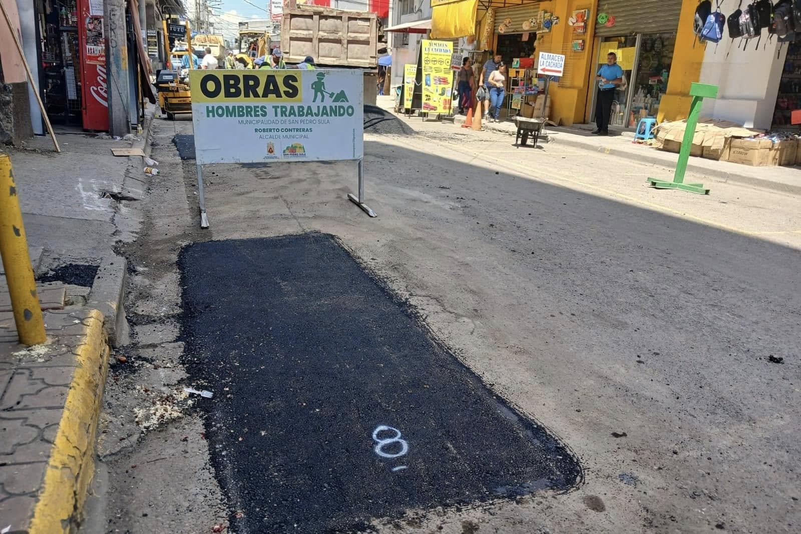 Mantenimiento de vías pavimentadas en San Pedro Sula.