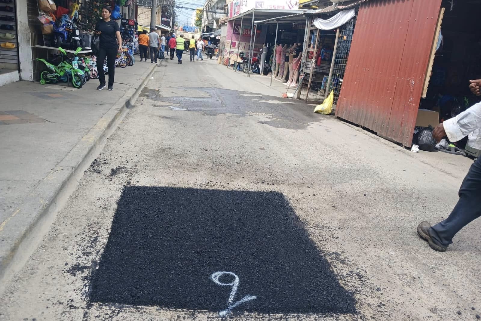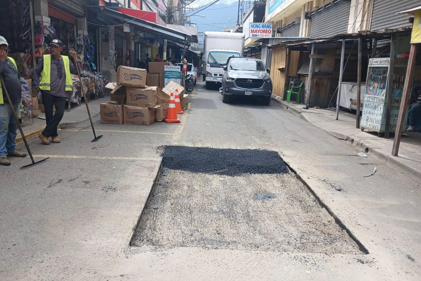 Roberto Contreras, a través de nuestro equipo ejecuta trabajos de bacheo con asfáltico en 2 avenida, 4 calle, barrio El Centro.