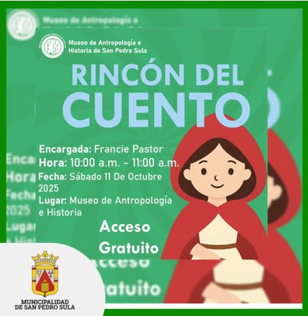 Este sábado, 11 de octubre, el Museo de Antropología e Historia de San Pedro Sula te invita a una hora mágica de narración. La encargada será Francie Pastor.