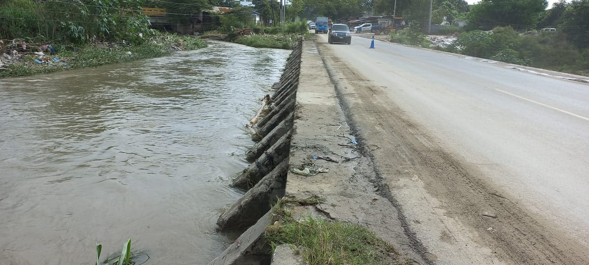 La Gerencia de Infraestructura continua con los trabajos de limpieza de escombros en el vado ubicado en el sector de CEMCOL, carretera Jucutuma.