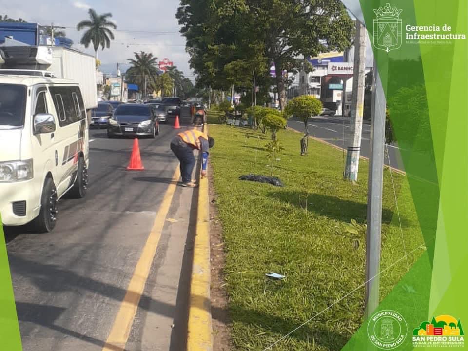 La Gerencia de Infraestructura realiza el mejoramiento y pintado del bordillo de la avenida circunvalación. Roberto Contreras, Alcalde.