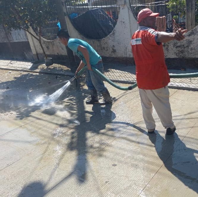 Equipos de nuestra Gerencia de Infraestructura realizan limpieza de pasajes y cajas domiciliarias, colocación de tapaderas y reparación de aceras en colonia Las Brisas.