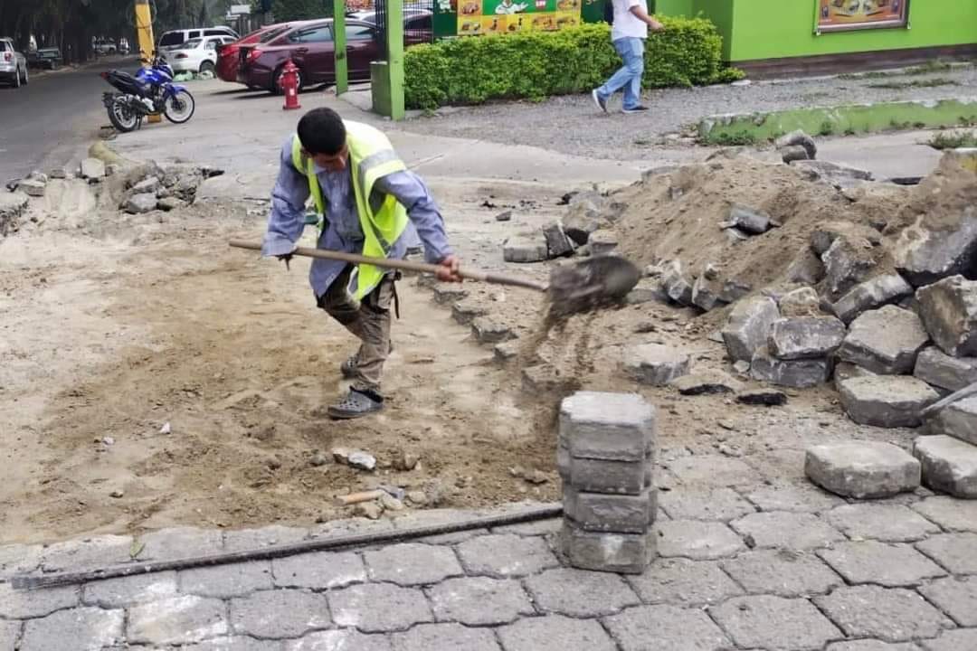 Bajo la gestión del alcalde Roberto Contreras, nuestro equipo continúa con los trabajos de bacheo con adoquines en vías internas de la colonia Universidad.