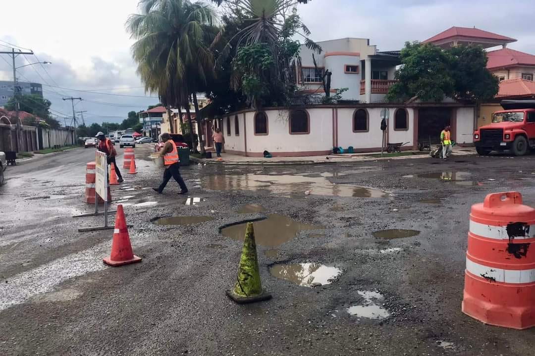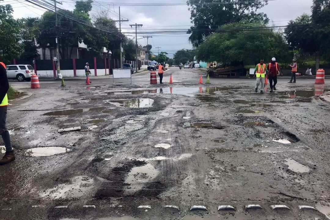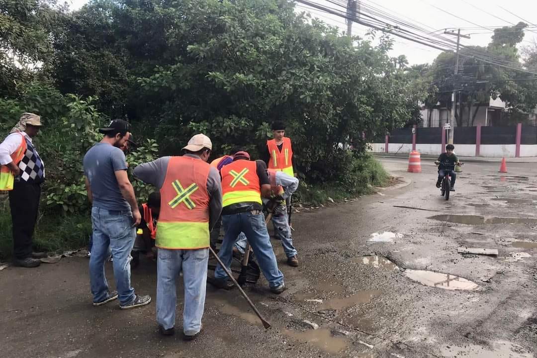 Nuestro equipo ejecuta trabajos de bacheo con concreto asfáltico en la colonia San Carlos de Sula.