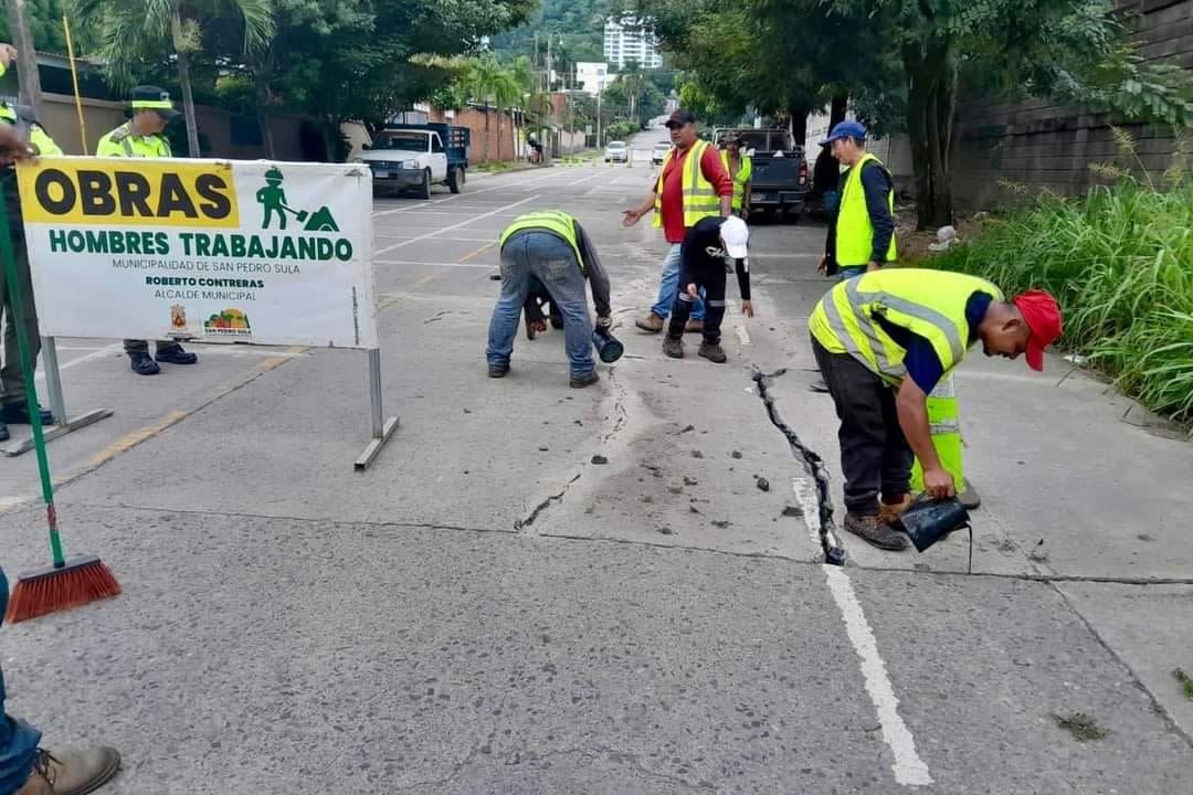 Nuestro equipo ejecuta trabajos de sellado de juntas y fisuras con asfalto en la 10 calle S.O.