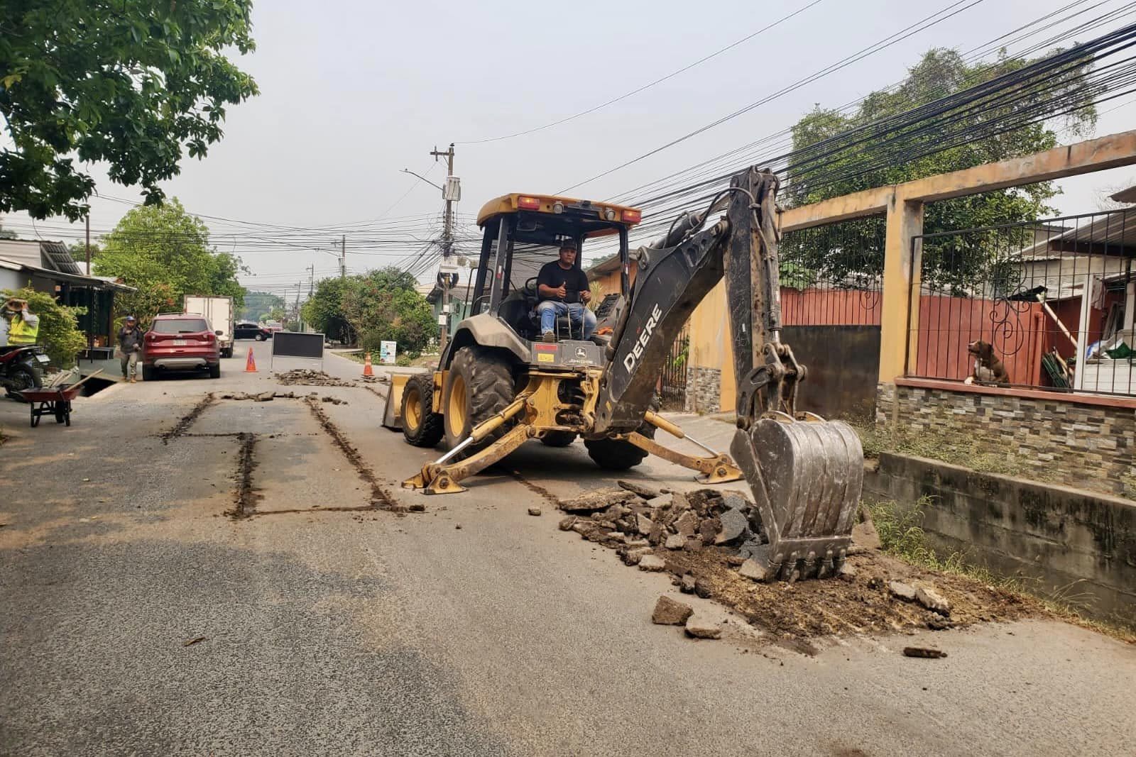 Continuamos con los trabajos de bacheo con concreto asfáltico en colonia Los Castaños.