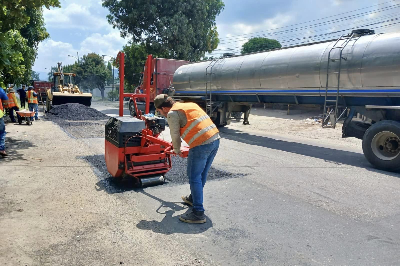 Este día continuamos con los trabajos de bacheo con concreto asfáltico en el Segundo Anillo.