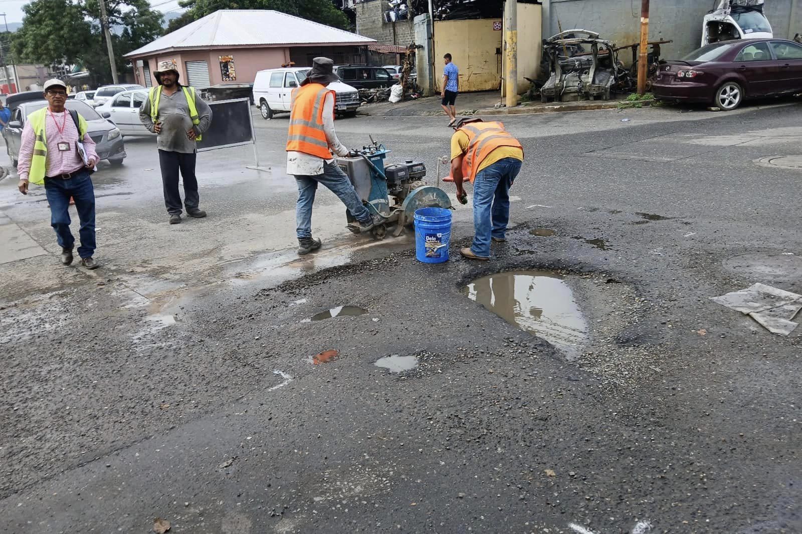 Mantenimiento de vías pavimentadas en San Pedro Sula.