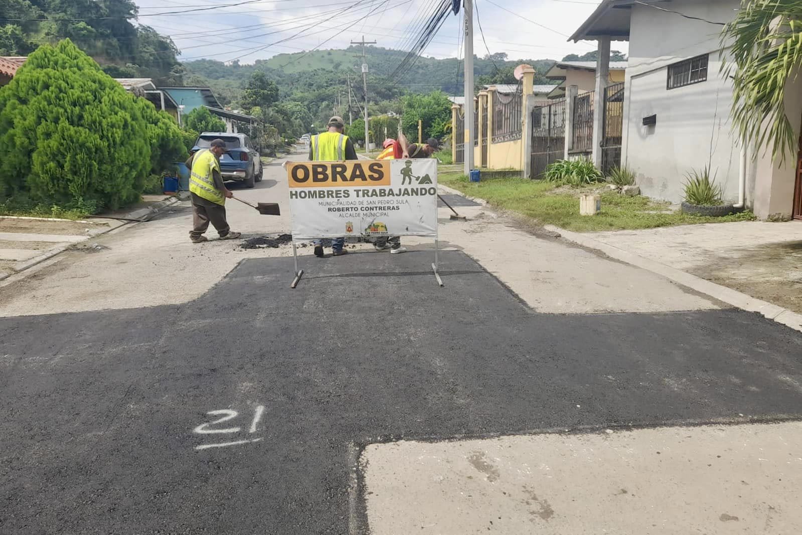 Mantenimiento de vías pavimentadas en San Pedro Sula.