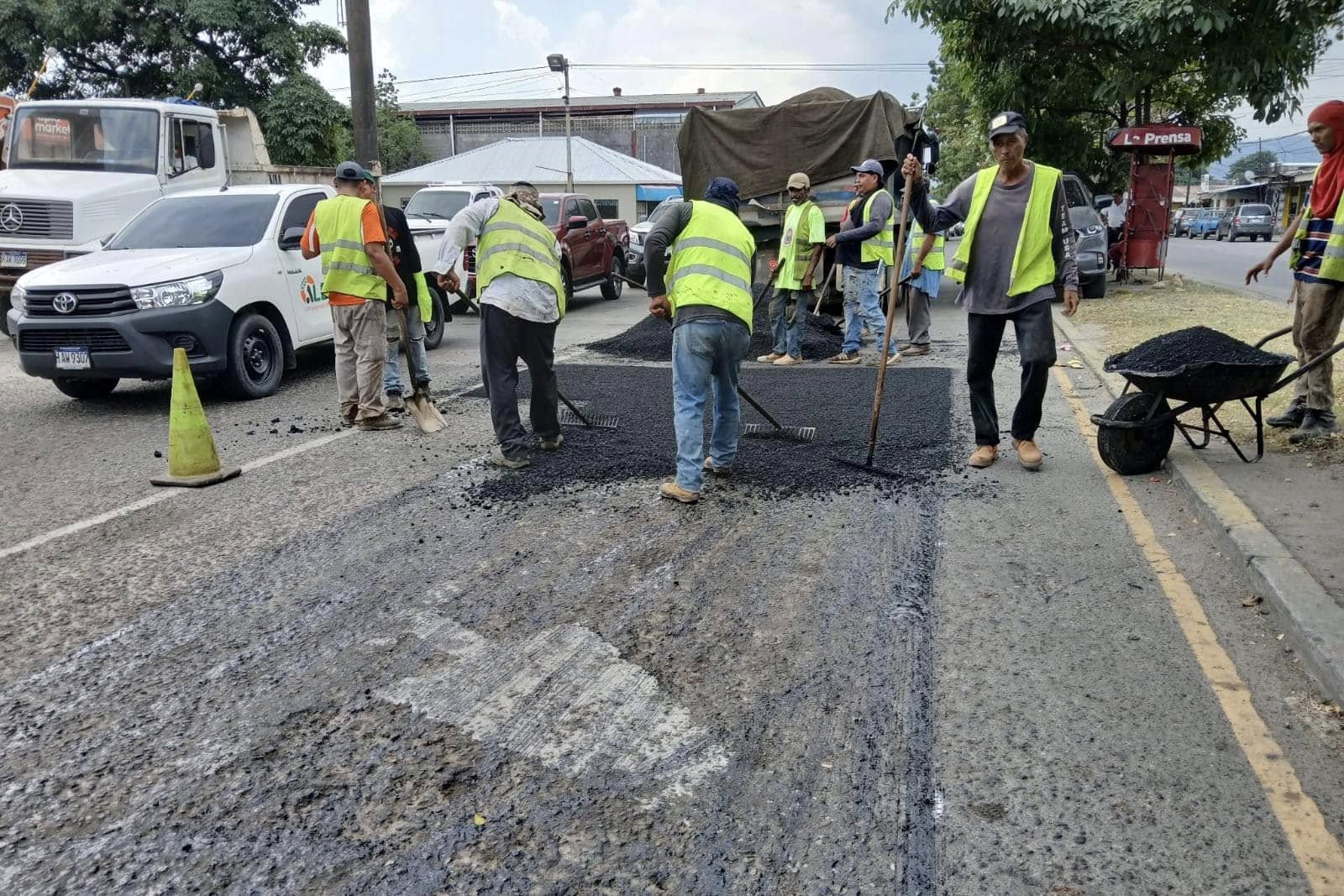 Roberto Contreras continúa trabajando en el programa de mantenimiento de vías pavimentadas en San Pedro Sula. Actualmente, se están realizando trabajos de bacheo asfáltico en la intersección de la Avenida Júnior con Juan Pablo II.