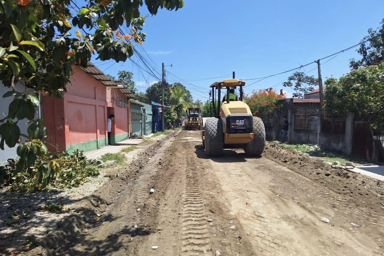 Roberto Contreras, está llevando a cabo trabajos de terracería frente a la escuela Luis García Bustamante, en el sector La Pradera.